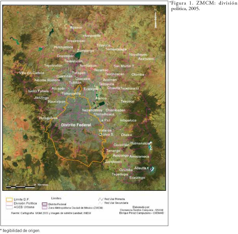 La unidad de análisis fue el Área Geoestadística Básica (AGEB) del INEGI para los 59 municipios (58 del Estado de México y uno de Hidalgo) y las 16 delegaciones del Distrito Federal que conforman la ZMCM4 (Figura 1). En total se contabilizaron 5 433 Áreas Geoestadísticas Básicas Urbanas (AGEB's). Los datos provienen del II Conteo de Población y Vivienda, 20055