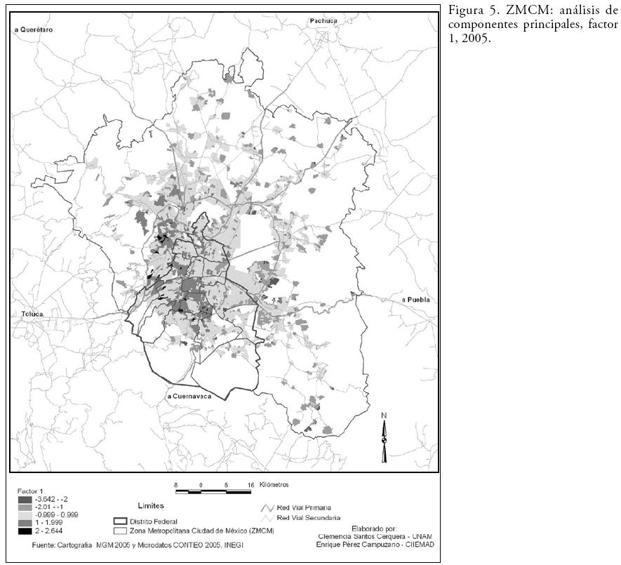 Por último, otra veta explorada por los estudios geográficos es aquélla relacionada con la aplicación de índices de segregación espacial, que incluyen técnicas de ecología factorial (Rubalcava y Schteingart, 1985, 2000; Rodríguez y Arriagada, 2004; González, 2005; Fuentes y Cervera, 2006; Ariza y Solís, 2009). Los resultados muestran tendencias disímiles. A pesar de que se afirma que existe una fuerte diferenciación socioespacial, los índices no muestran resultados concluyentes (González, 2005). En este trabajo se sigue la línea de trabajo de la ecología factorial.