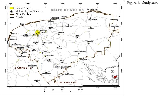 Yucatán is on the north of the Yucatán Peninsula (Figure 1); its geology corresponds to tertiary and quaternary limestones in plains and karstic landforms. The vegetation of the coast towards the southsoutheast is of coastal scrub, mangroves, low forest, grazing lands, subdeciduous medium forest and subperennial medium forest.
