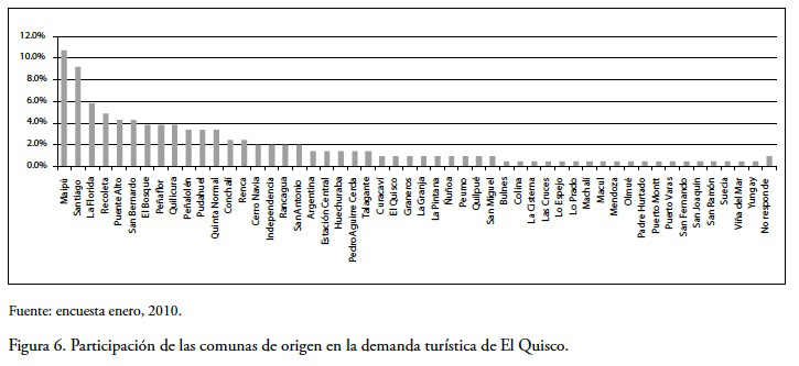 Así, la demanda turística de El Quisco muestra un crecimiento explosivo en las últimas décadas alcanzando una tasa anual de 116%; de esta manera el balneario se ha convertido en un importante destino para los ocho millones de turistas internos, que viajan cada verano a lo largo del país (Diario El Mercurio, 2013; Figura 4).